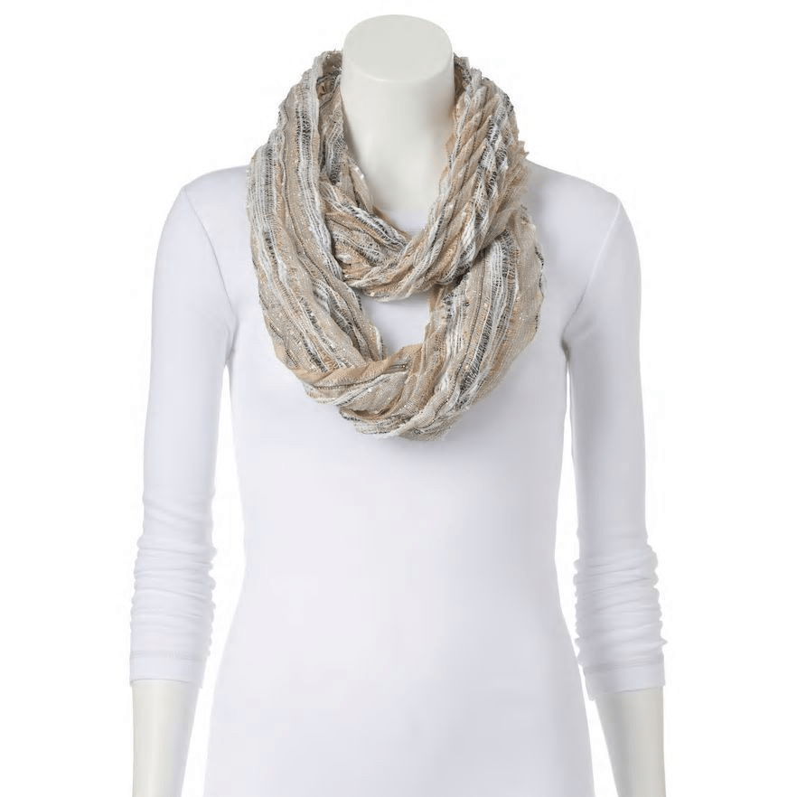 Wrap yourself in effortless style with the Apt. 9 Women’s Lurex Infinity Scarf. Designed with subtle lurex accents woven into a soft cotton-rayon blend, this scarf adds a touch of shimmer while keeping you cozy. Its versatile infinity design makes it easy to style for everyday wear, whether you’re dressing up a work outfit or adding flair to a casual look.
