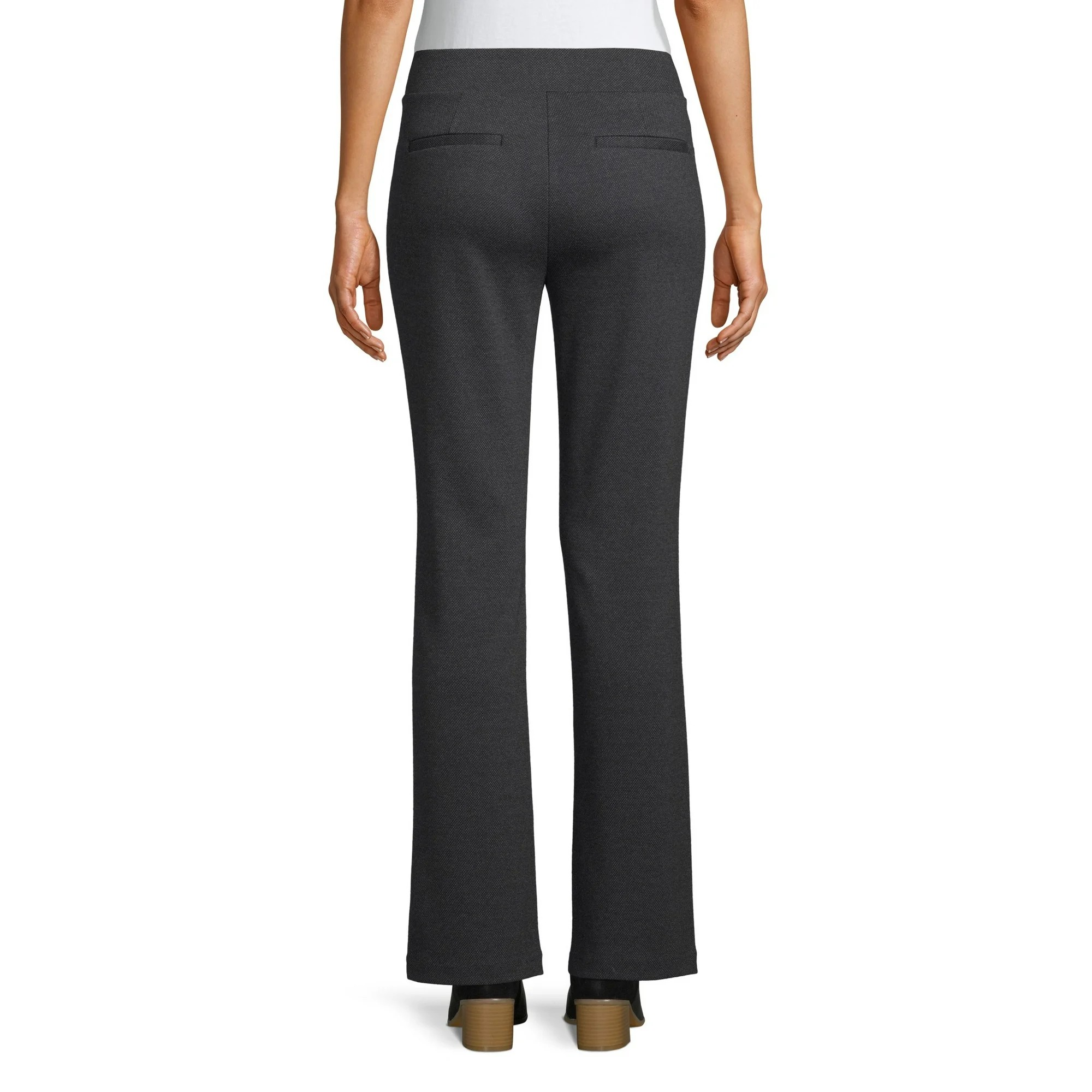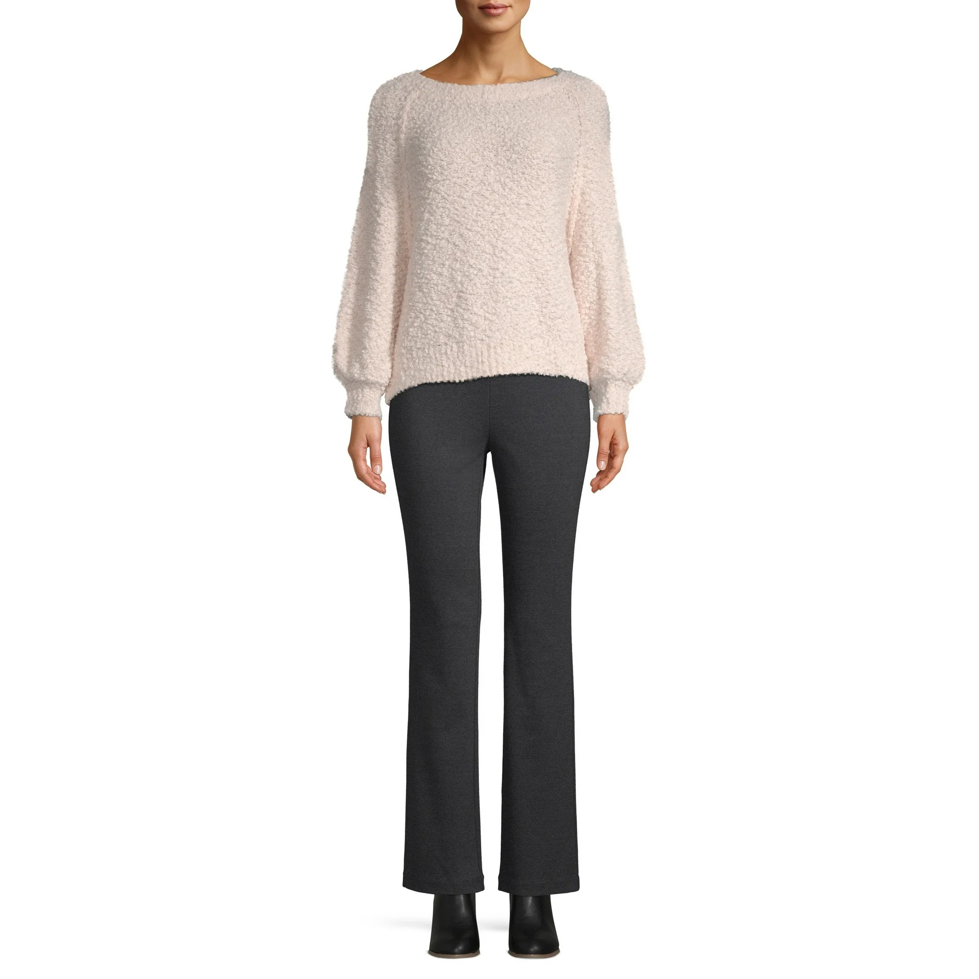 Effortless comfort meets everyday polish with the Time and Tru Women’s Petite Knit Bootcut Pants in classic black. Designed with a flattering high-rise fit and a gently flared leg, these pull-on pants offer the perfect balance of stretch, structure, and sophistication.