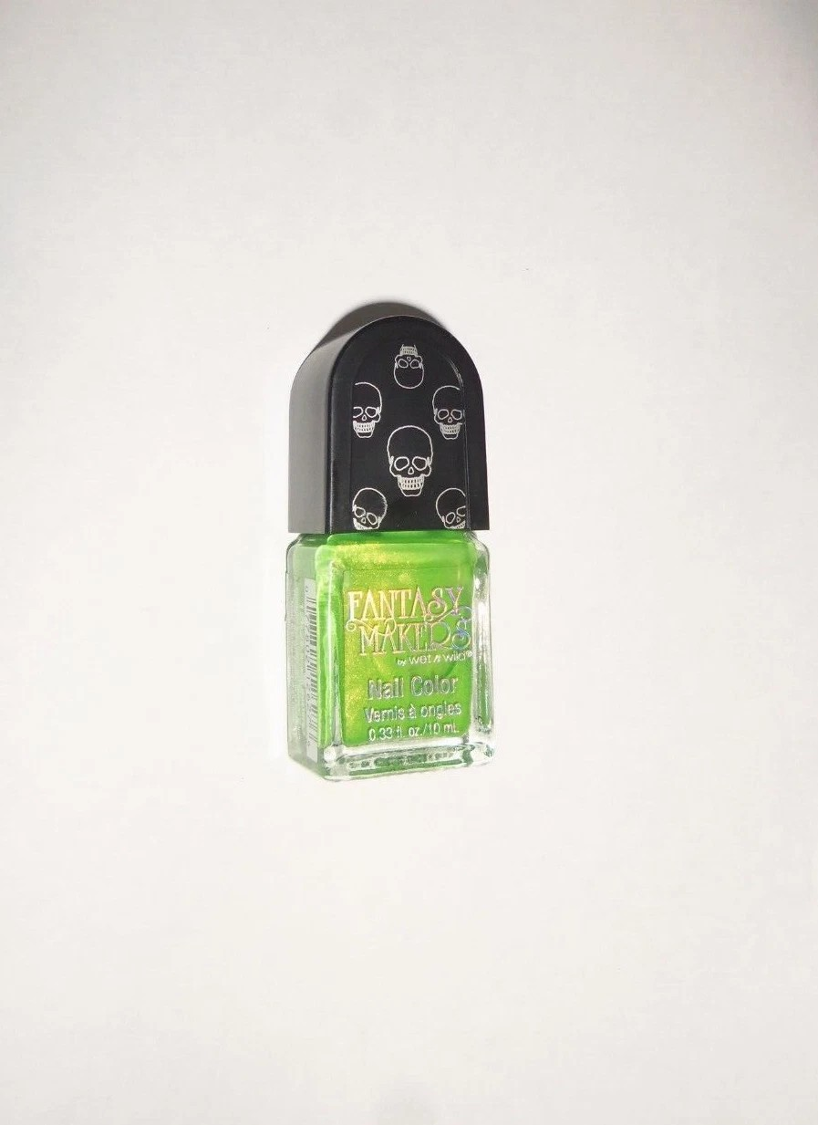 Get spooky-chic fingertips with Wet n Wild Fantasy Makers Nail Color in 12627 Roach Busters, a bold, electric green shimmer that glows with otherworldly energy. Part of the limited-edition Fantasy Makers collection, this polish captures Halloween fun with a skull-topped bottle and vibrant, long-lasting color payoff.